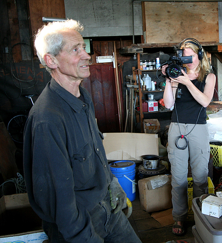 On Thursday this week, Producer Tobi Elliott grabbed camera and gear for an impromptu filming adventure as Dorothy‘s restoration expert, Tony Grove, headed to Victoria B.C. to meet master caulker Ted Knowles. Knowles had worked with boatbuilder Brian Walker for years, eventually taking over his boatbuilding shop off the Gorge waterway in View Royal. Walker had built many of Frank Fredette’s boats, who had been in turn an apprentice to J.J. Robinson, one of Victoria’s first shipwrights and Dorothy‘s builder in 1896.