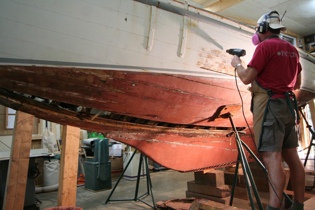 Tony likens this unearthing of stories hidden in Dorothy‘s planks to an archaeological dig, and I would add that it’s a dig motivated less by cold scientific investigation than by human curiosity and empathy. This is not some inert, long-deserted dinosaur bone site, but a cherished family boat restored over and over again through the years by men and women who loved her and sailed her. Some had the means to give her the best in boat-building craftsmanship and the finest materials available of the day. Some simply did what they could with the tools and understanding they had, incomplete though they might have been. But no matter what finesse has been applied, it’s largely because of the heart, diligence and sacrifice of every single one of her previous owners that loved and cared for her that Dorothy can stand in Tony’s shop today, 116 years old and still able to handle a refit that will put her back in the water.