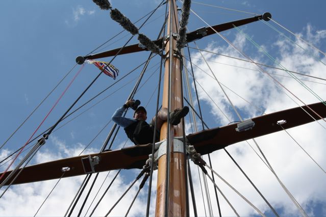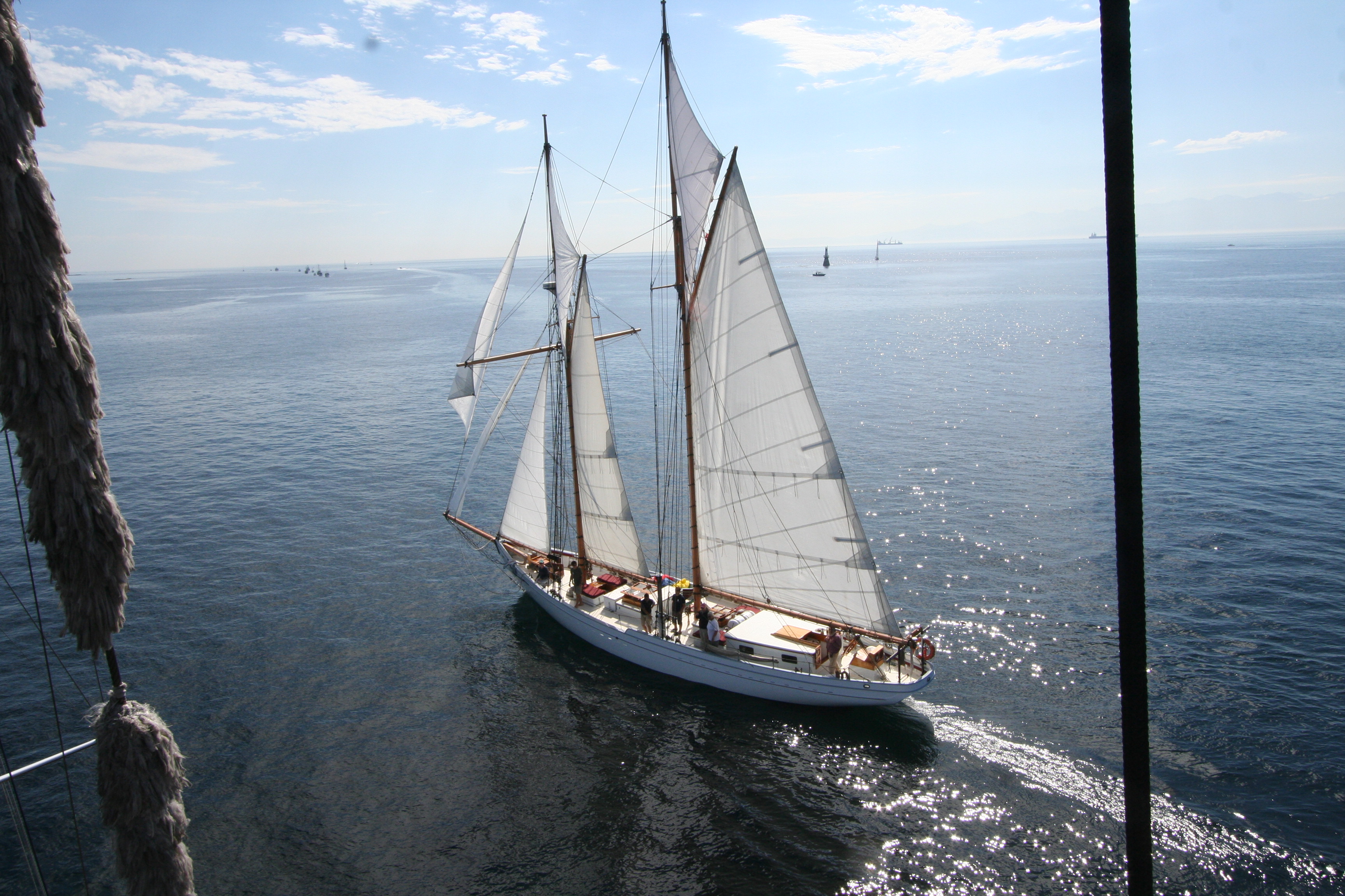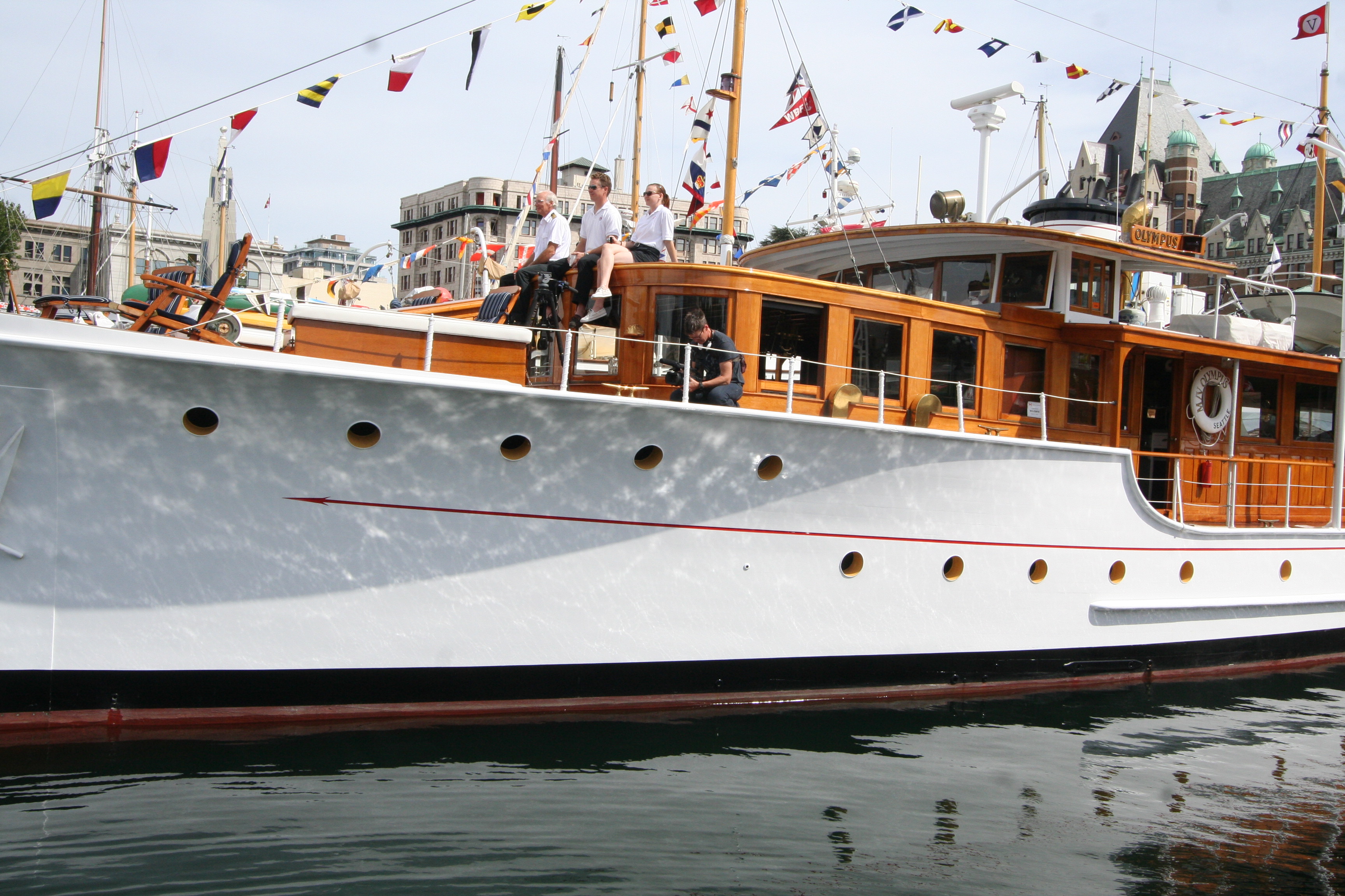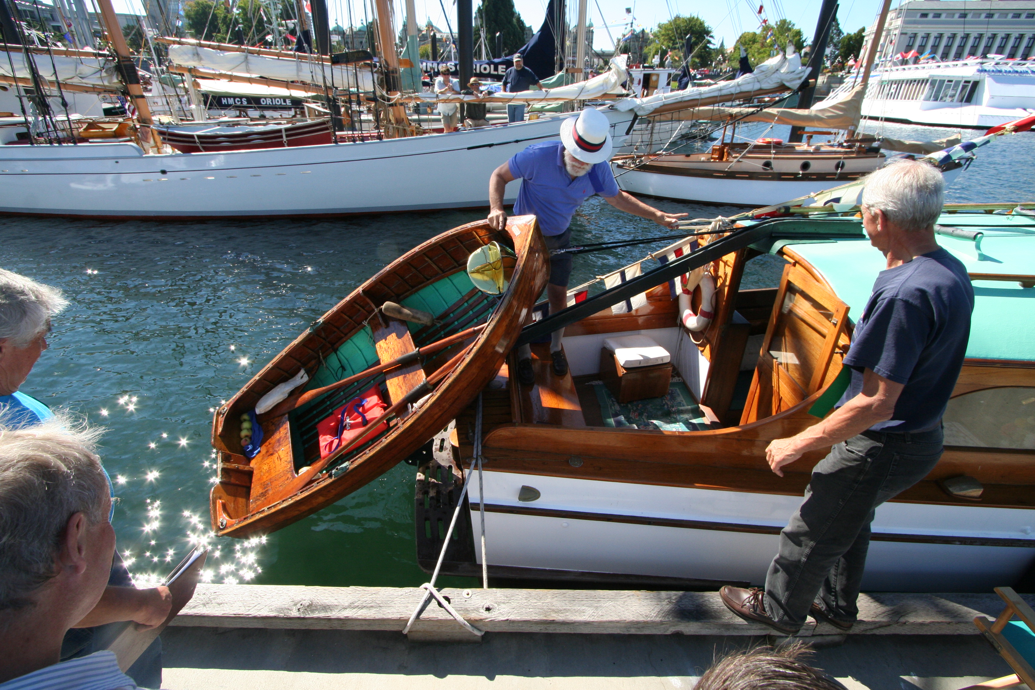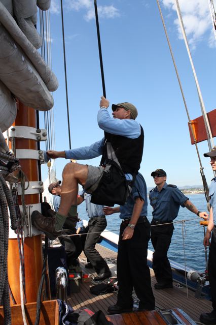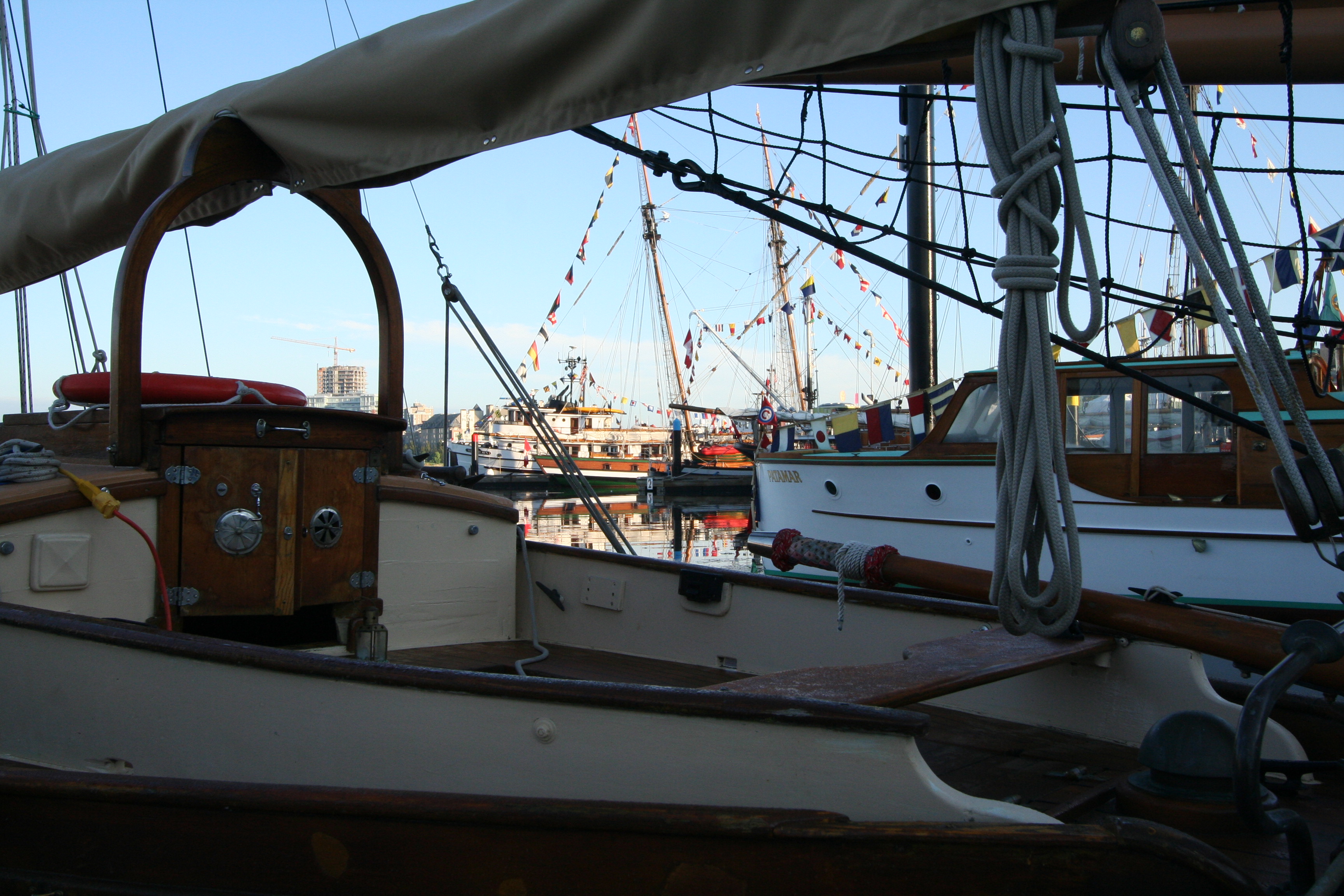 Brief recap of the Victoria Classic: lots of filming went from sunrise to sunset, lots of T-shirts were sold (almost $1,000 raised! THANK YOU Pacific Northwest Boaters!) and we captured some great interviews, but time is short so I’ll let the images take it away. Unless otherwise noted, all photos are by Tony Grove. (Check out the ones he took from atop HMCS Oriole’s spreaders!)