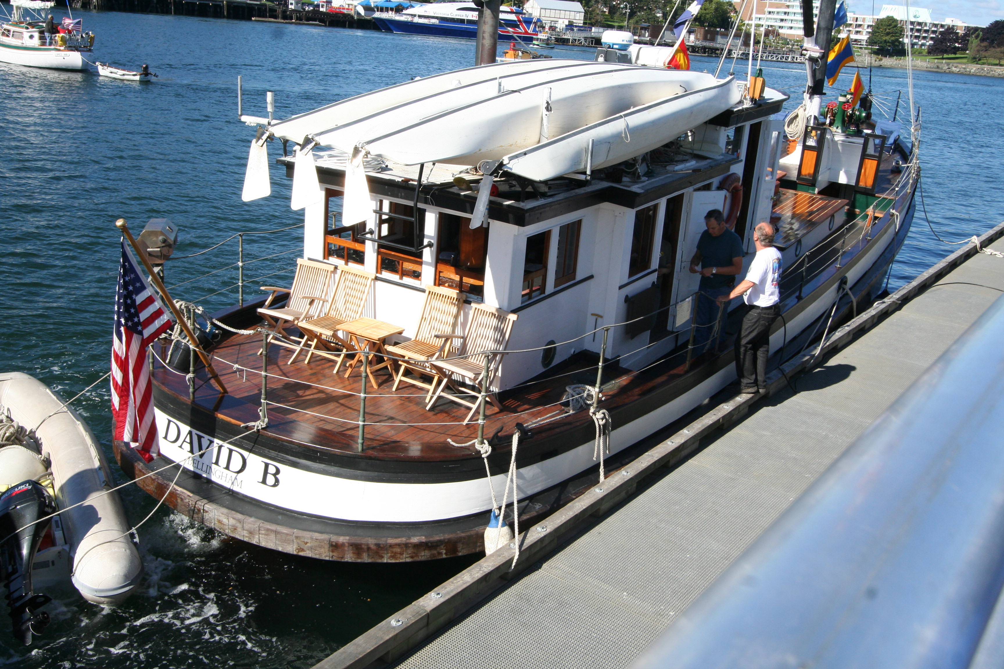 Before we head to our next adventure at the 2013 Wooden Boat Festival, where Tony Grove (shipwright) and I (Tobi, filmmaker) will be speaking about Dorothy‘s history and present-day restoration, let me introduce two other wonderful people that Dorothy has brought our way: Clay Evans, procurer of fine beverages and artisan cheese Canadian Coast Guard Search and Rescue, author of “Rescue at sea” and all-around stand up guy, and Bill Noon, war correspondent Canadian Coast Guard Commanding Officer, Captain of many ships and in particular, of Messenger III. Together, we make up a merry band that is slowly making its way down to Port Townsend.