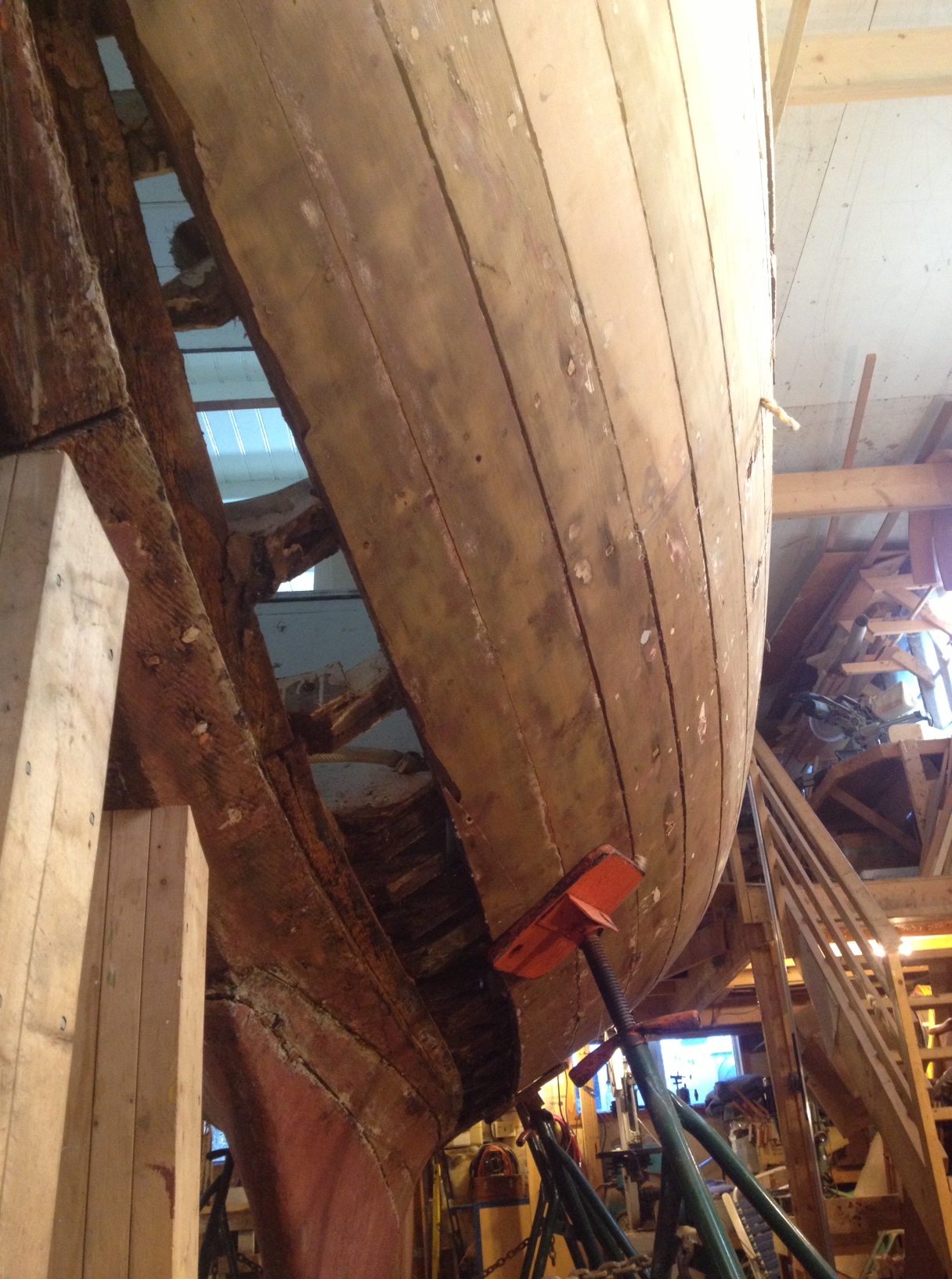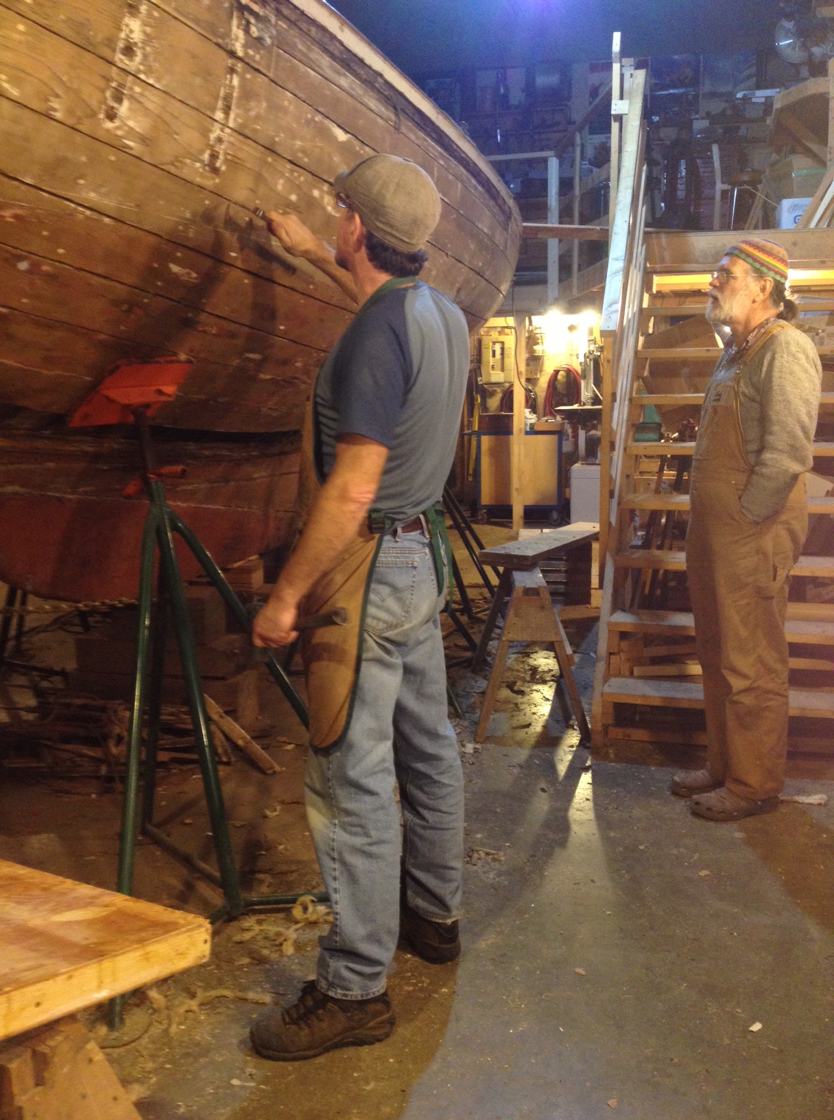 Tony Grove is working with David Baker today and tomorrow. David had owned Dorothy in the 1980s and is working in some areas around planks that he himself installed.