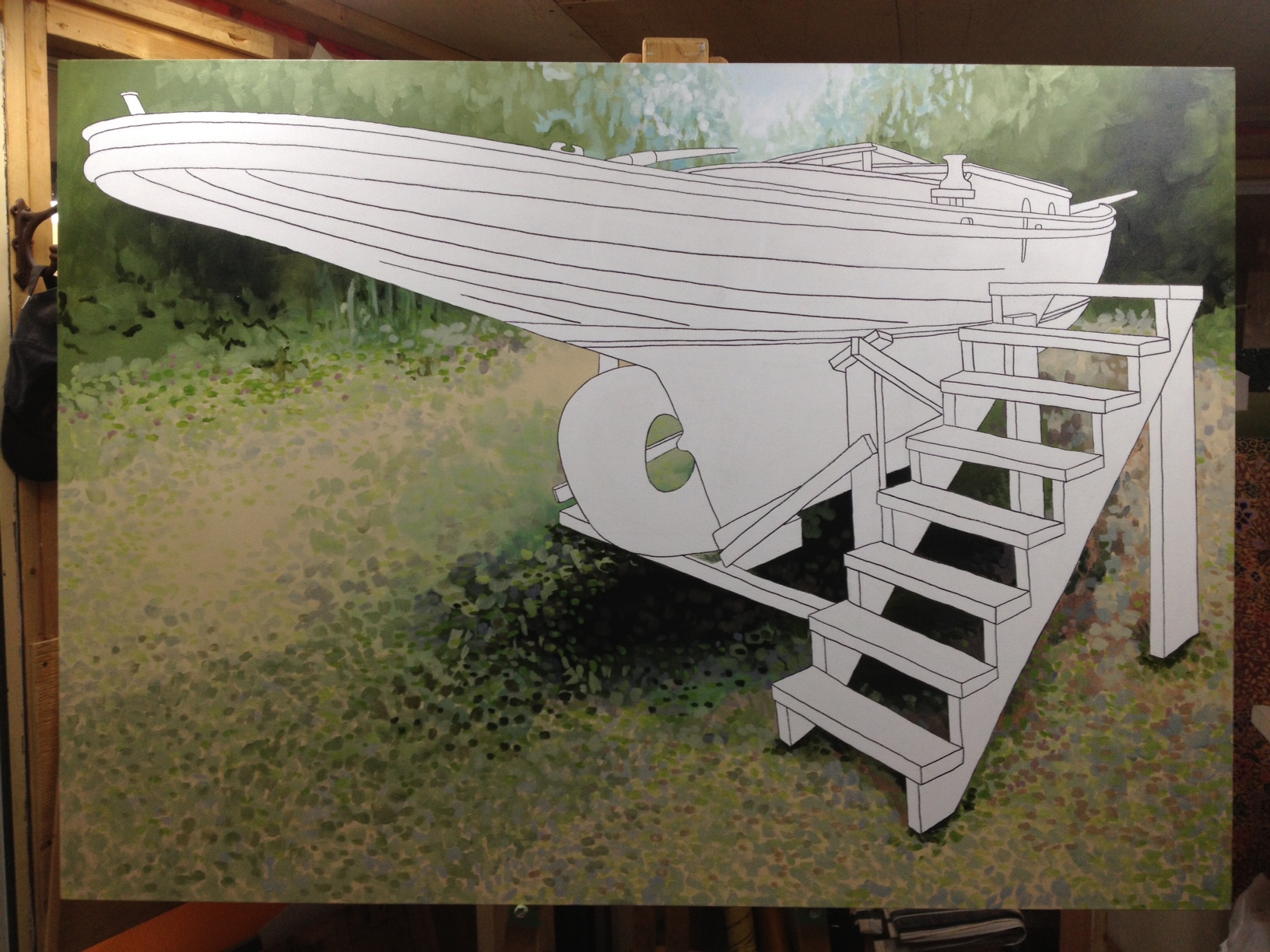 Tony has to work fast to avoid paint drying before he can blend it, and he was quite often finished a section just as I was finally set up, framed right and focussed. So… now I’m set, ready to shoot him painting. But THEN he would stand back for 5 minutes and contemplate. Sigh. Re-frame, capture and… he’s moving again. Ahhhhhh….. Seriously hard work. But it’s worth it because this wonderful painting he’s working on will figure in our film (“Between Wood and Water”) as we discover Dorothy in a new way – through the eyes of a marine artist. Isn’t it beautiful?