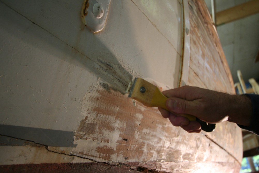 So I am thrilled every day that I get to work on the story of Dorothy, because every day is a true adventure with her. As Tony (the boatbuilder restoring Dorothy for the Maritime Museum of BC) was sanding down her port side hull last week, after tediously stripping the paint, we could see a potential story in every plank, and new questions arose about construction practices of the day: Her original planks are flat-sawn, not quarter-sawn like you would typically see today. Is that because of available wood at the time, or is there a technical reason for it? Those original planks were scarfed together – was that common practice rather than butting them end-to-end? There is a mix of materials used for paying the seams – lead putty, Portland cement, and even epoxy used for patches large and small – what’s the story here?